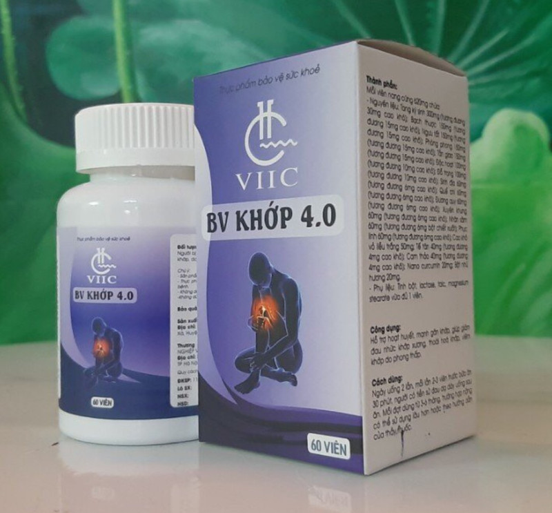 BV KHỚP 4.0 sản phẩm của VIỆN HÓA HỌC CÔNG NGHIỆP VIỆT NAM Thực phẩm bảo vệ sức khỏe hỗ trợ hoạt huyết.hỗ trợ mạch gân khớp.giảm đau nhức mỏi cơ xương khớp.đau vai gáy cột sống giảm thoái hóa khớp chống viêm khớp do thấp khớp .phong thấp tê bì chân tay ngăn ngừa bệnh loãng xương.