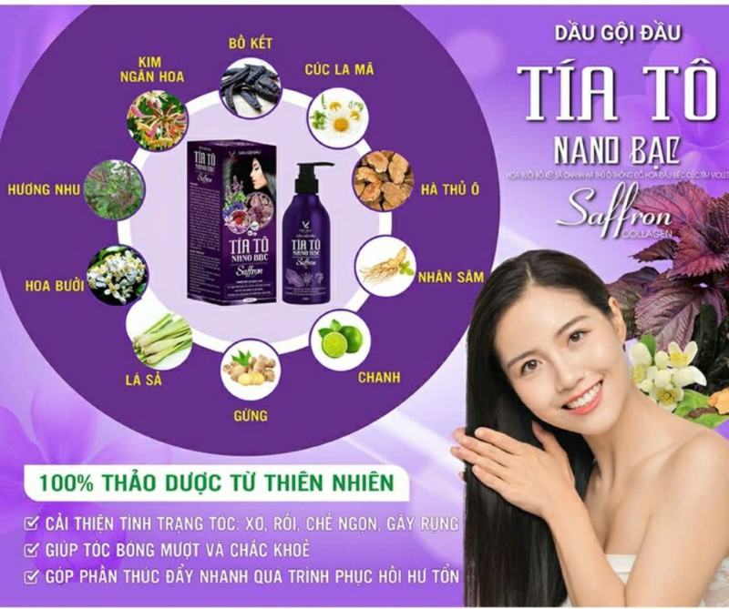 Bộ Dầu Gội Thảo Dược Tía Tô Saffon Nano Bạc Sạch Gàu Suôn Mượt, Đen Tóc Giảm Gãy Rụng