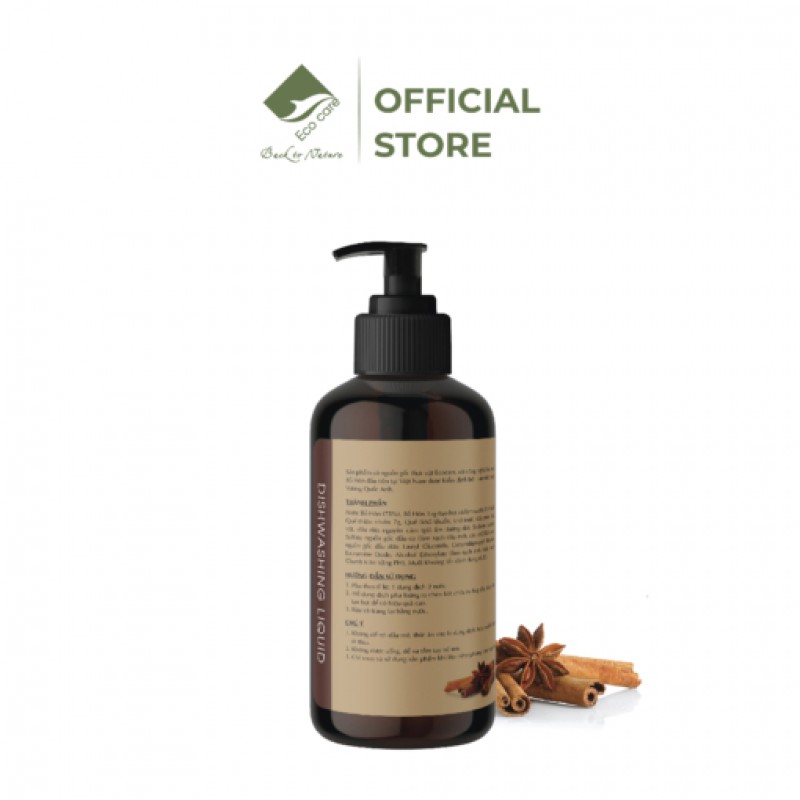 Nước bồ hòn lên men tự nhiên (Tạo bọt và làm sạch), Tinh dầu Quế thiên nhiên (Khử mùi, khử khuẩn), Glycerin thực vật, dầu dừa nguyên cám (Giữ ẩm da tay), Sodium Laureth Sulfate nguồn gốc dầu cọ (làm sạch dầu mỡ), Acid Chanh (cân bằng PH), muối khoáng (ổn định dung dịch), nước tinh khiết