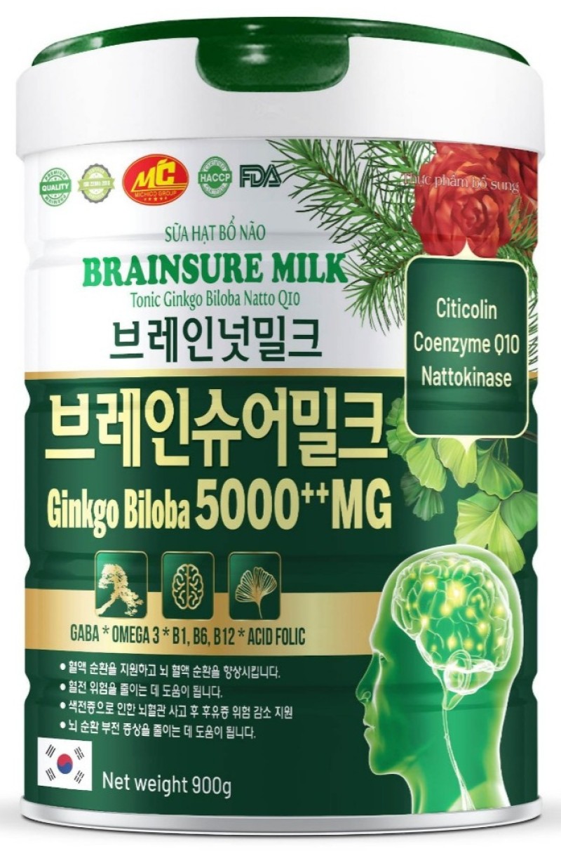 Hộp 900g ,Sữa Hạt Bổ Não Brainsure Milk Tonic Ginkgo Biloba Natto Q10 Hỗ Trợ Giảm Rối Loạn Tiền Đình, Đau Đầu, Mất Ngủ Công dụng • Ginkgo Biloba. Giúp duy trì máu huyết chảy về não nhằm tăng độ minh mẫn, tăng trí nhớ và sự chú ý, chống đau đầu, chóng mặt. • Bảo vệ tế bào thần kinh trong trường hợp thiểu năng tuần hoàn não hay tiếp xúc với chất gây ngộ độc thần kinh. • Hỗ trợ chức năng não như tăng cường sự tập trung và trí nhớ, bằng cách kích hoạt trao đổi chất ở não. • Tăng khả năng tập trung, cải thiện trí nhớ, hạn chế những dấu hiệu mệt mỏi, lo âu ở người cao tuổi, học sinh, sinh viên, người thường xuyên lao động trí óc. • Chống lại bệnh thiếu máu, ngăn ngừa tai biến mạch máu não cũng như những chứng bệnh nguy hiểm ảnh hưởng đến não bộ. • Hỗ trợ người bị rối loạn tiền đình, ù tai, chóng mặt, mất ngủ tuổi trung niên. • Cải thiện tình trạng rối loạn tình dục do dùng thuốc. • Giảm triệu chứng suyễn, thoái hóa điểm vàng và bệnh trĩ… ------------------------------------------------------------------------------ Đối tượng sử dụng Sử dụng trong các trường hợp thiểu năng tuần hoàn não, chóng mặt, đau đầu, suy giảm trí nhớ, rối loạn vận động • Người bị suy giảm trí nhớ, rối loạn tuần hoàn máu não • Người rối loạn chức năng do thiếu máu cục bộ ở tai, mũi, họng, mắt (ù tai, chóng mặt, giảm thính lực, suy thoái võng mạc) • Người bị bệnh tắc nghẽn động mạch chi dưới mãn tính • Người mắc các bệnh lý về mạch máu não như: thiếu máu não, đau đầu, hoa mắt, chóng mặt, nghe kém, cảm giác đau nhức,… • Người bị tai biến mạch máu não và chấn thương sọ não • Người mắc các bệnh lý về thần kinh như: rối loạn tiền đình, suy giảm trí nhớ, bệnh Alzheimer, parkinson. Lưu ý: Sản phẩm này không phải là thuốc và không có tác dụng thay thế thuốc chữa bệnh...