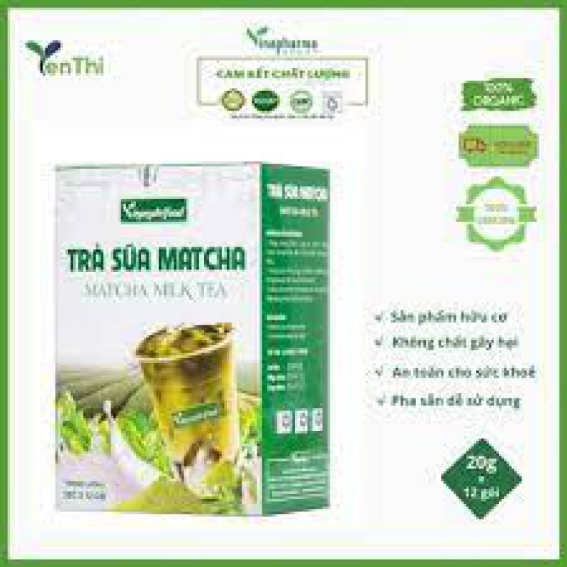 - Trà sữa Matcha của Vinapharma được sản xuất và đóng gói theo tiêu chuẩn, đảm bảo chất lượng và an toàn thực phẩm.