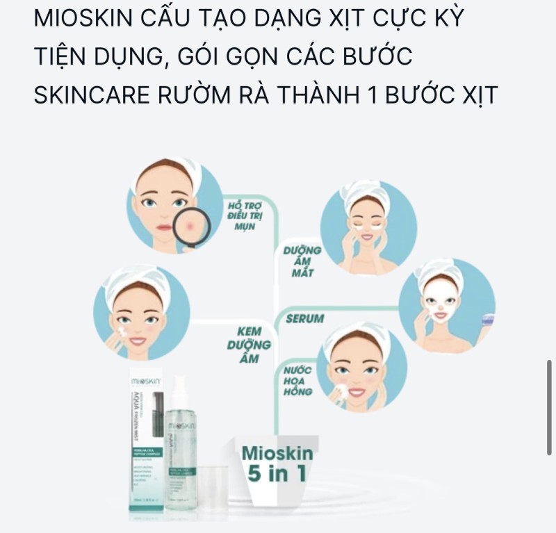 XỊT DƯỠNG TẾ BÀO GỐC MIOSKIN – Một dạng xịt khoáng dưỡng da, giúp chăm sóc da từ bên ngoài. Khác các loại xịt khoáng thông thường trên thị trường ở thành phần tế bào gốc, giúp phục hồi từng tế bào trên da mặt, MIOSKIN còn có khả năng dưỡng da toàn diện chỉ trong một bước, giúp tiết kiệm nhiều thời gian.