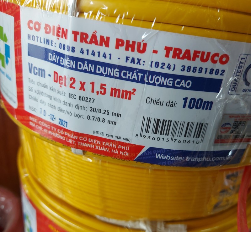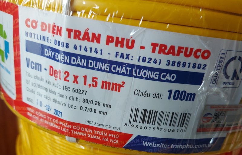 Dây điện Trần Phú 2×1,5 (100 m)